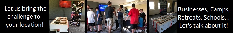 Teamwork, communication, and problem solving skills are all tested in these unique clue-finding, puzzle-solving, riddle-deciphering games. Teams will be able to race against each other using two identical games to compete for the best time and bragging rights. Multiple teams could compete for the overall best time at your location. If you are interested in benefitting from the team-building fun of an escape game at your location, contact us about creating a special event for you! It may be possible for us to customize the experience to better meet your needs or goals. Let's talk about it!
